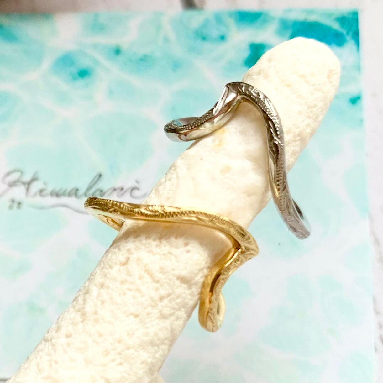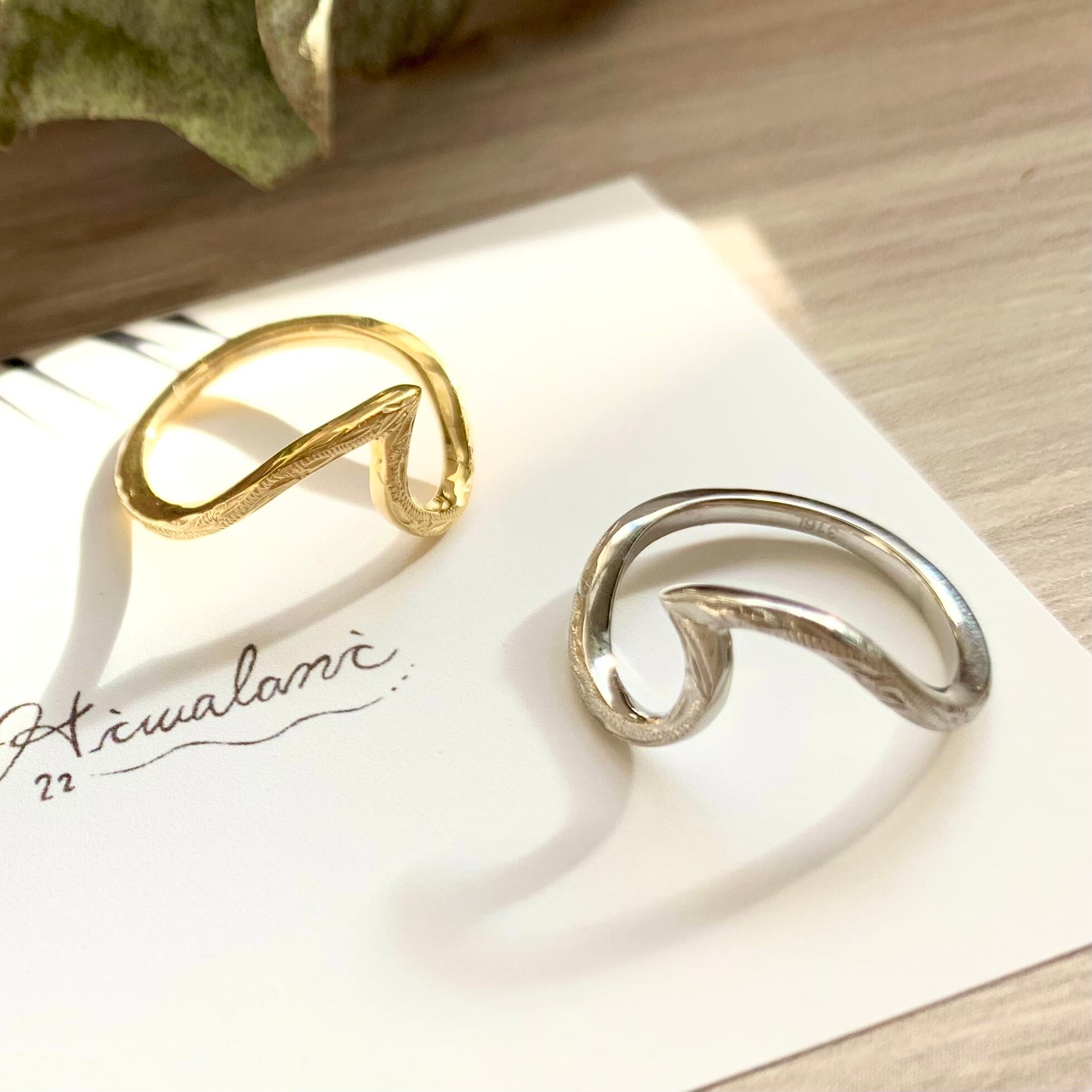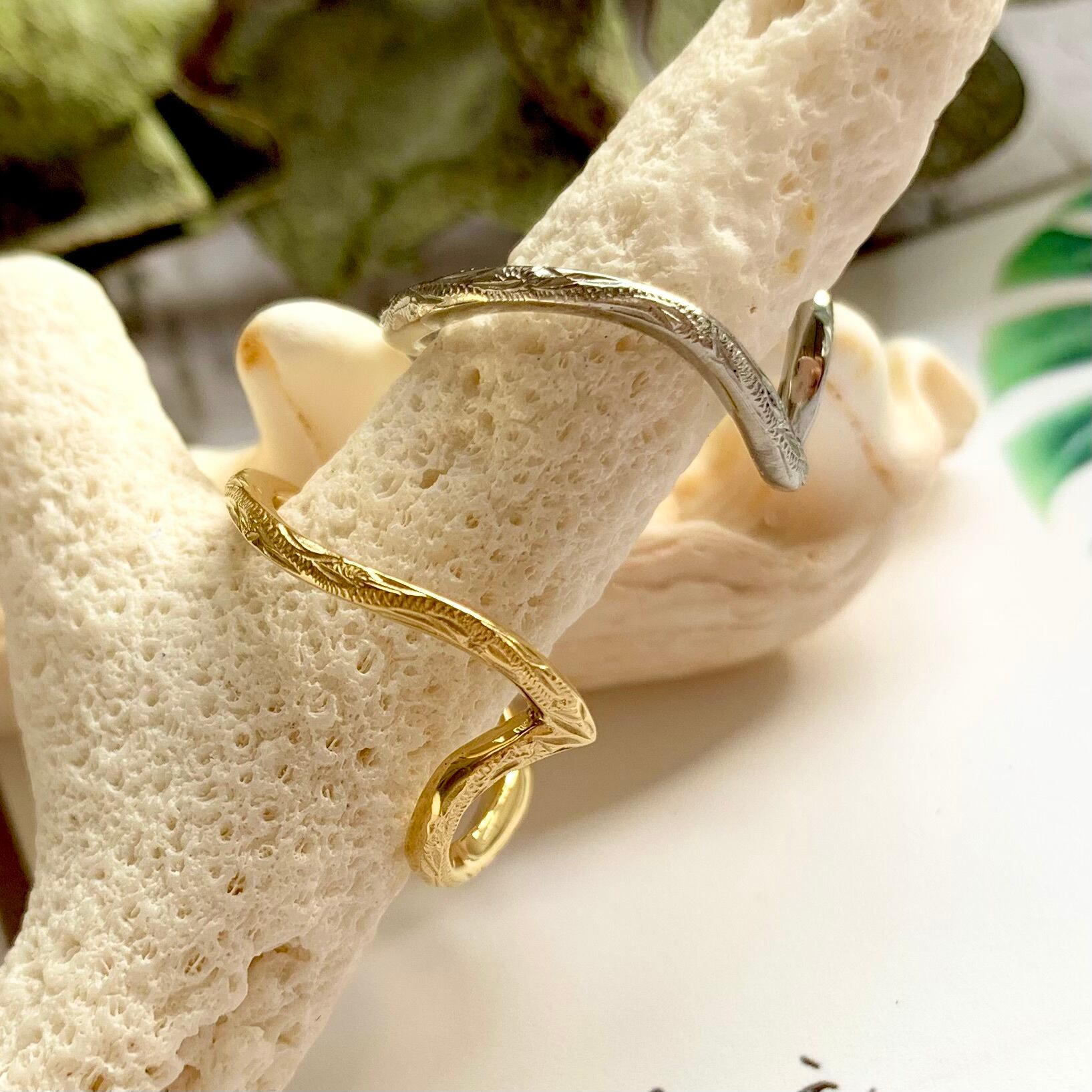 【 ハワイアンジュエリー 】 ウェーブ リング ( ゴールド ) サージカルステンレス SUS 316L ハワジュ 波 WAVE スクロール 指輪 ゴールドアクセサリー 錆びない つけっぱなし 金属アレルギー対応