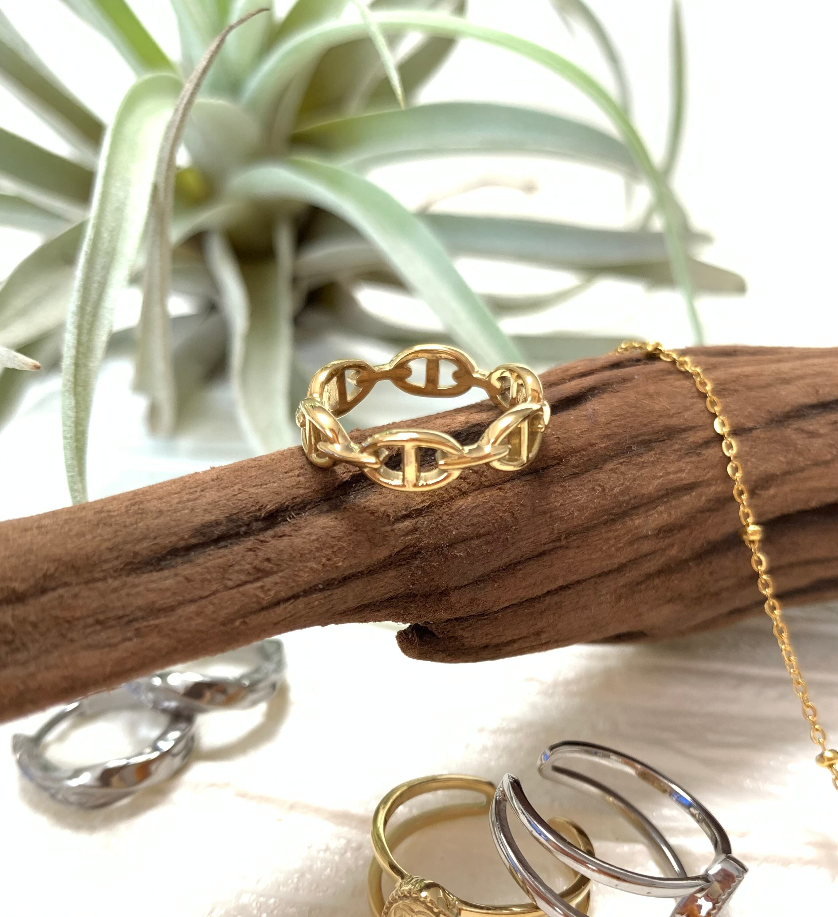 【 ハワイアンジュエリー 】 マリン チェーン リング ( ゴールド ) ハワジュ サージカルステンレス SUS 316L / ニッケルフリー 金属アレルギー対応 / つけっぱなし 錆びない / 指輪 アンカー
