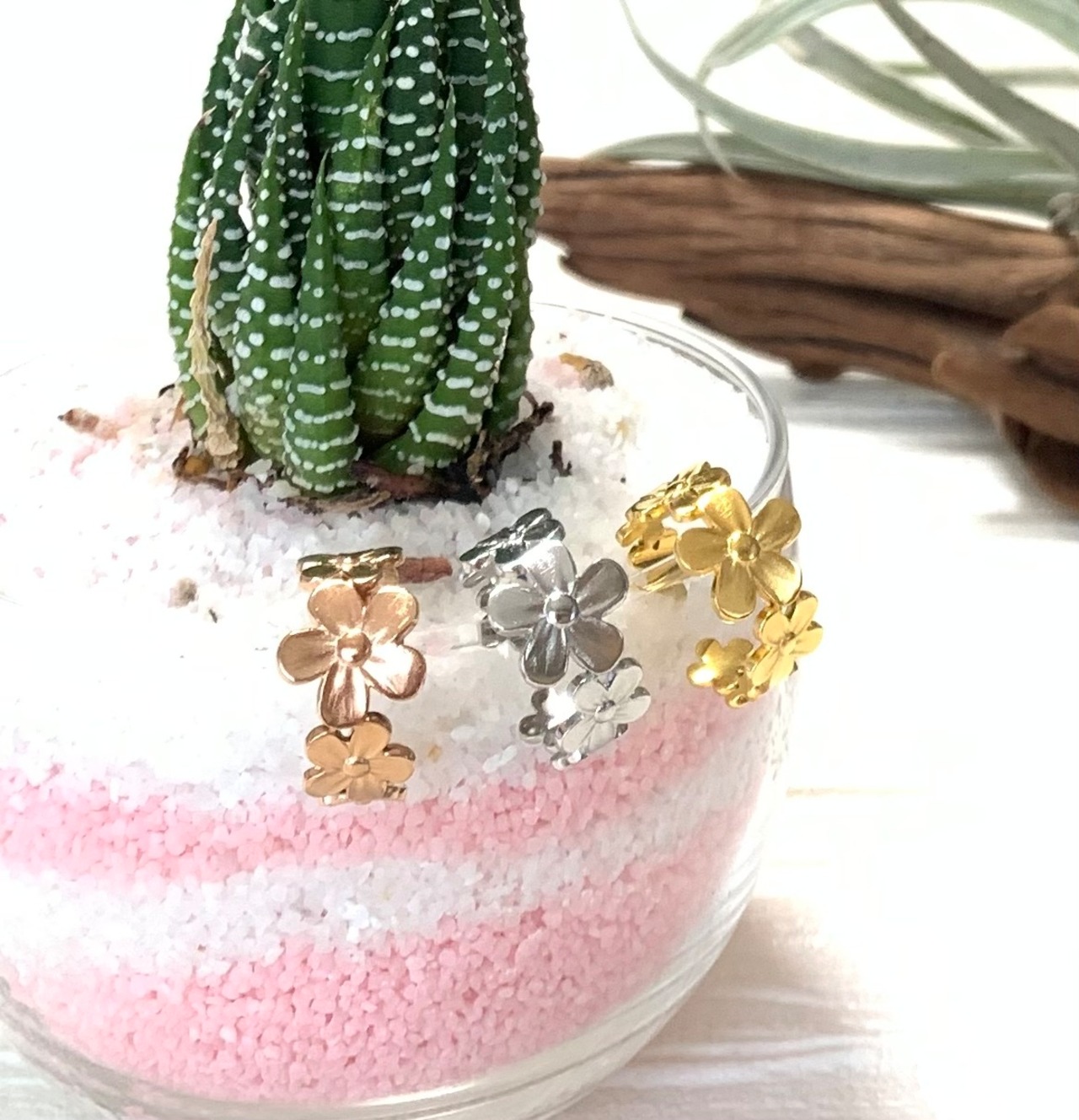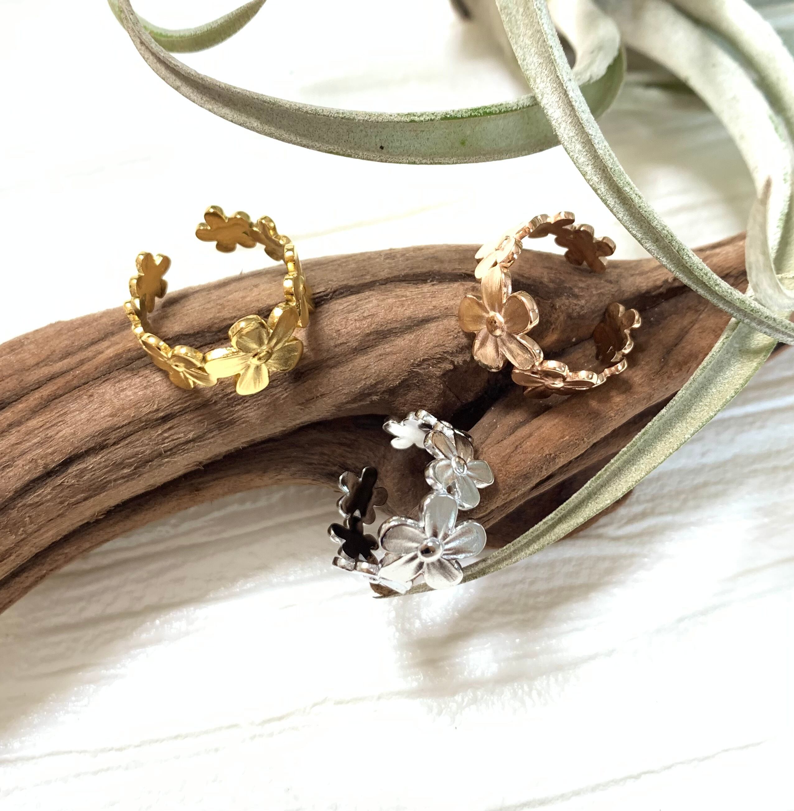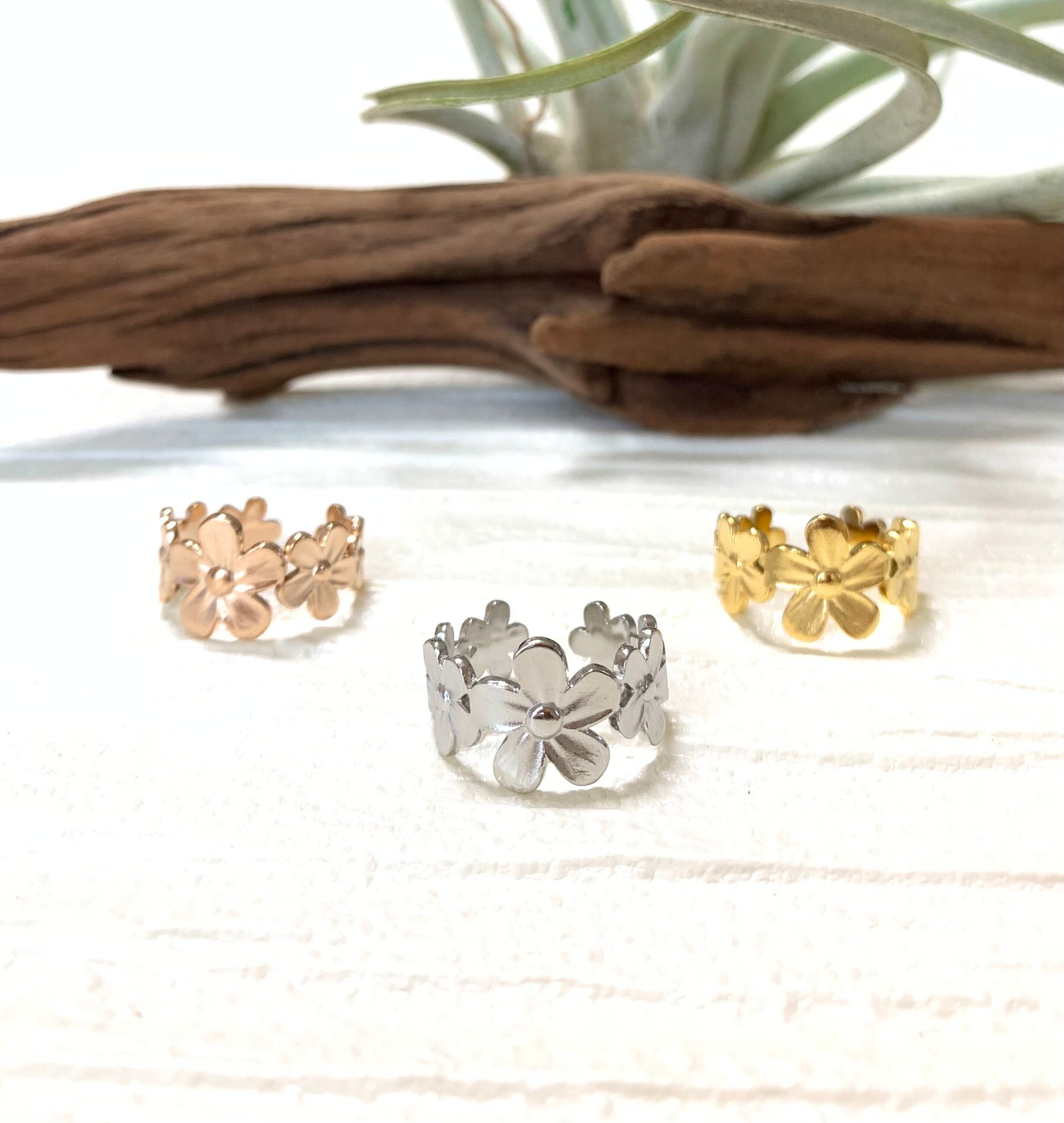 大きさの違うお花が一周したフラワーリースのようなリングです✩.*˚