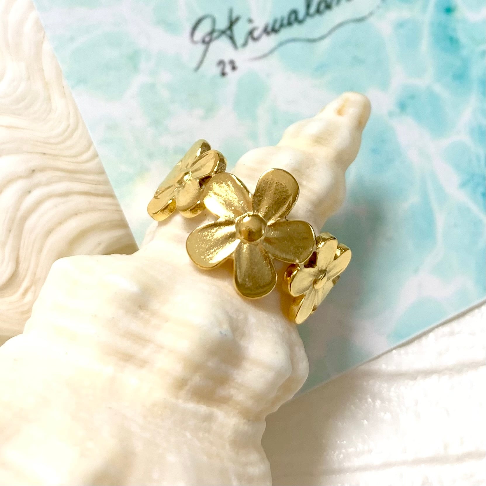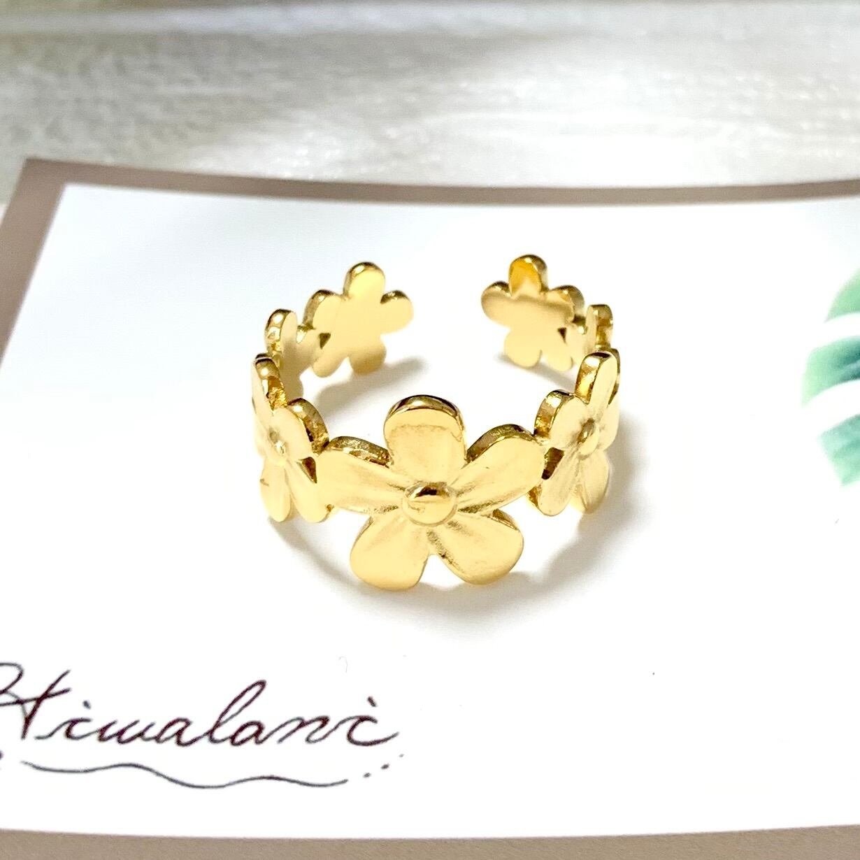【 2way 】 フラワー リング ハワイアンジュエリー ( ゴールド ) プルメリア ハワジュ サージカルステンレス 316L 指輪 フリーサイズ / ニッケルフリー 金属アレルギー対応 / つけっぱなし 錆びない / 送料無料 / ギフト ラッピング プレゼント