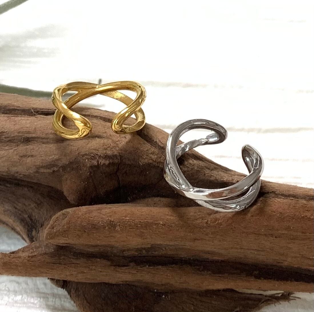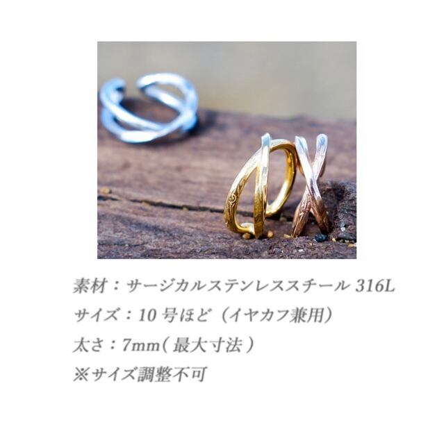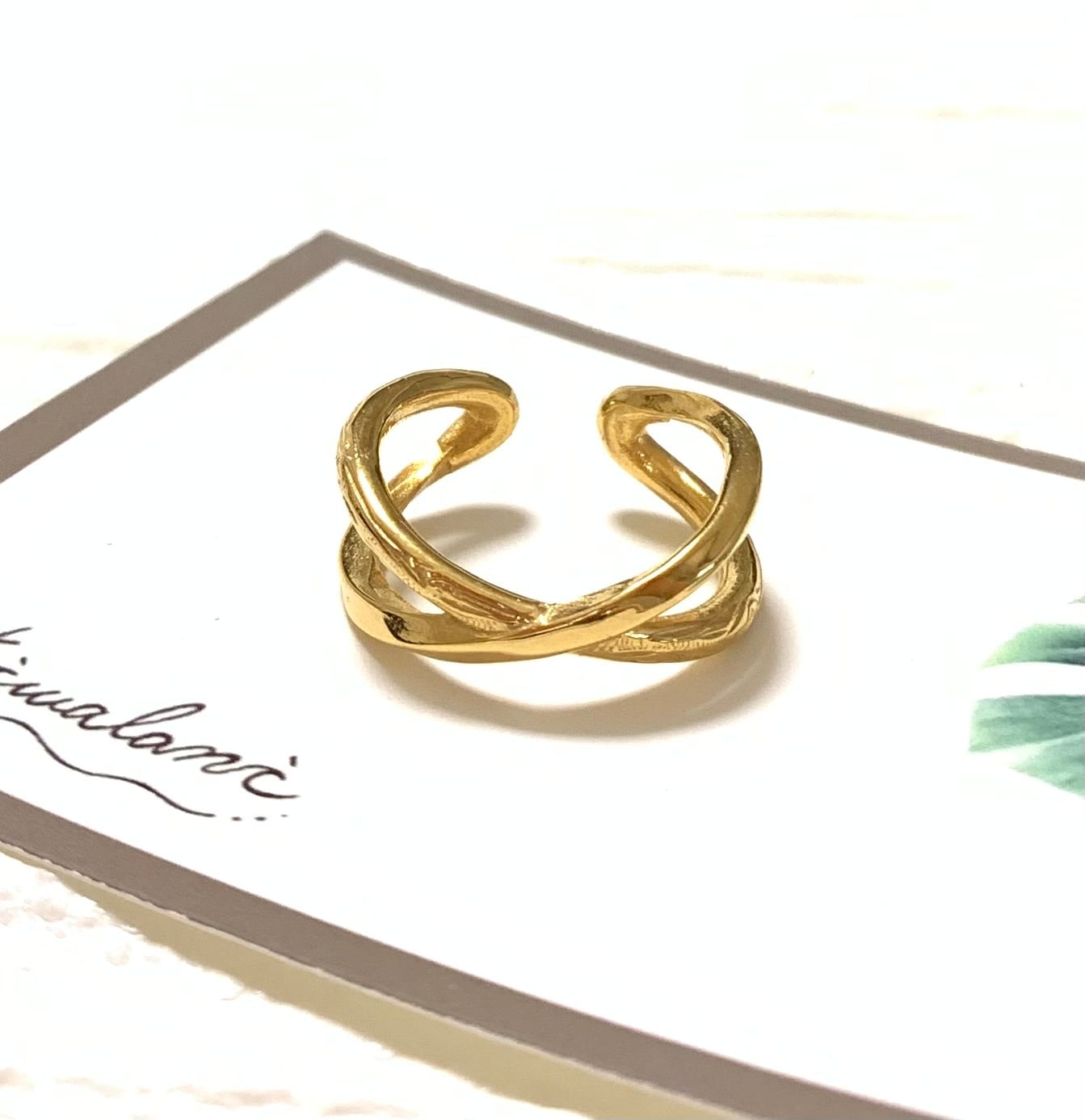 【 3way 】 クロス リング ハワイアンジュエリー ( ゴールド ) イヤーカフ / サージカルステンレス 316L ハワジュ 指輪 つけっぱなし 錆びない アクセサリー