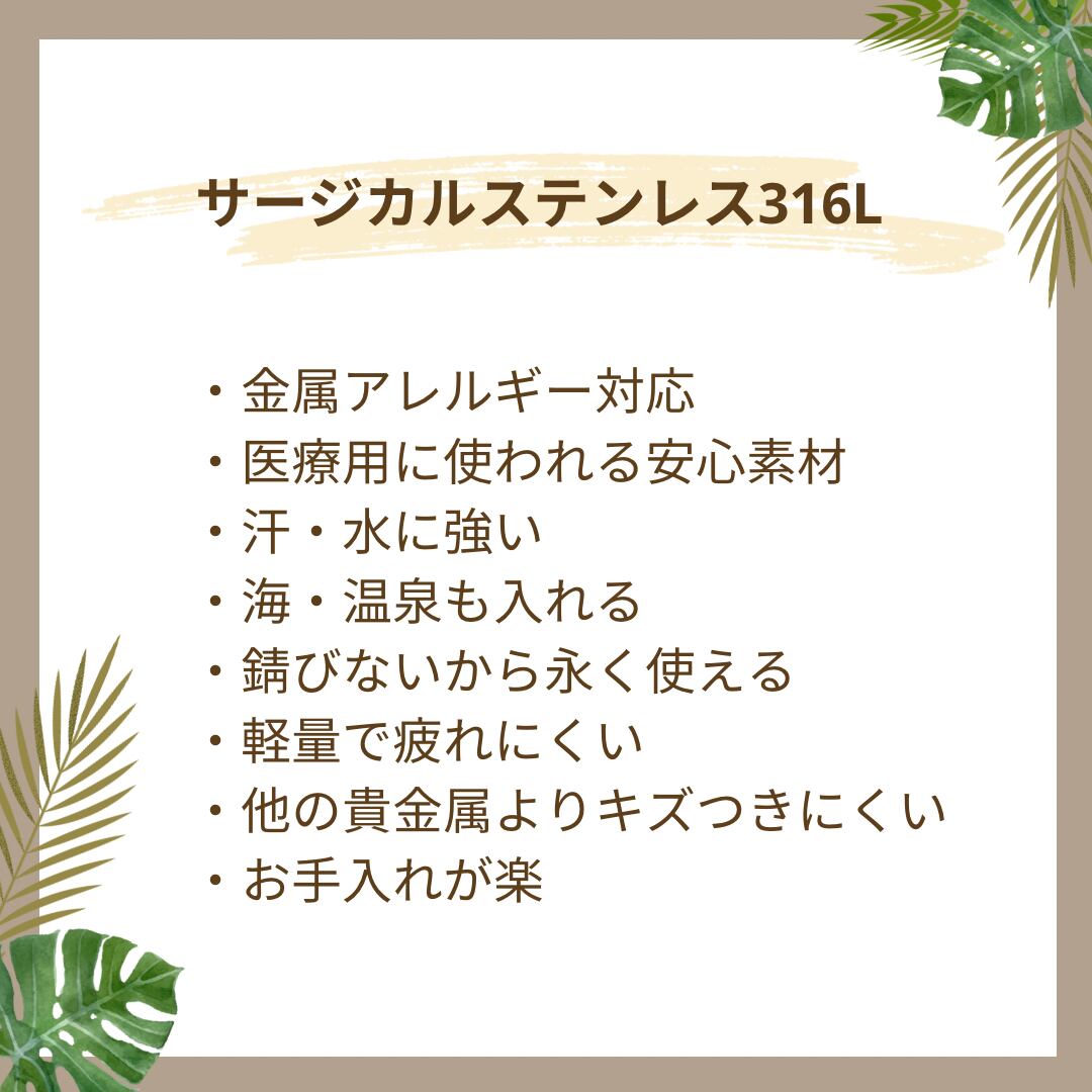 耐食性がありサビにくく金属イオンが溶け出しにくいという性質なので美しさを保ち金属アレルギーを発症しにくくします。