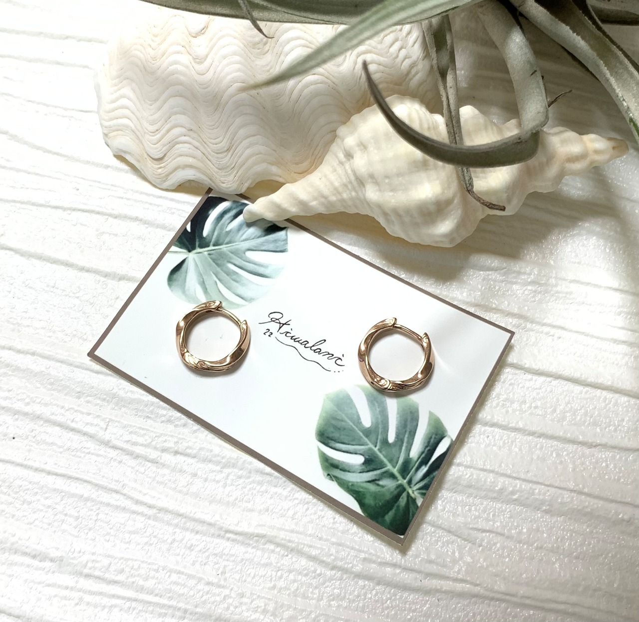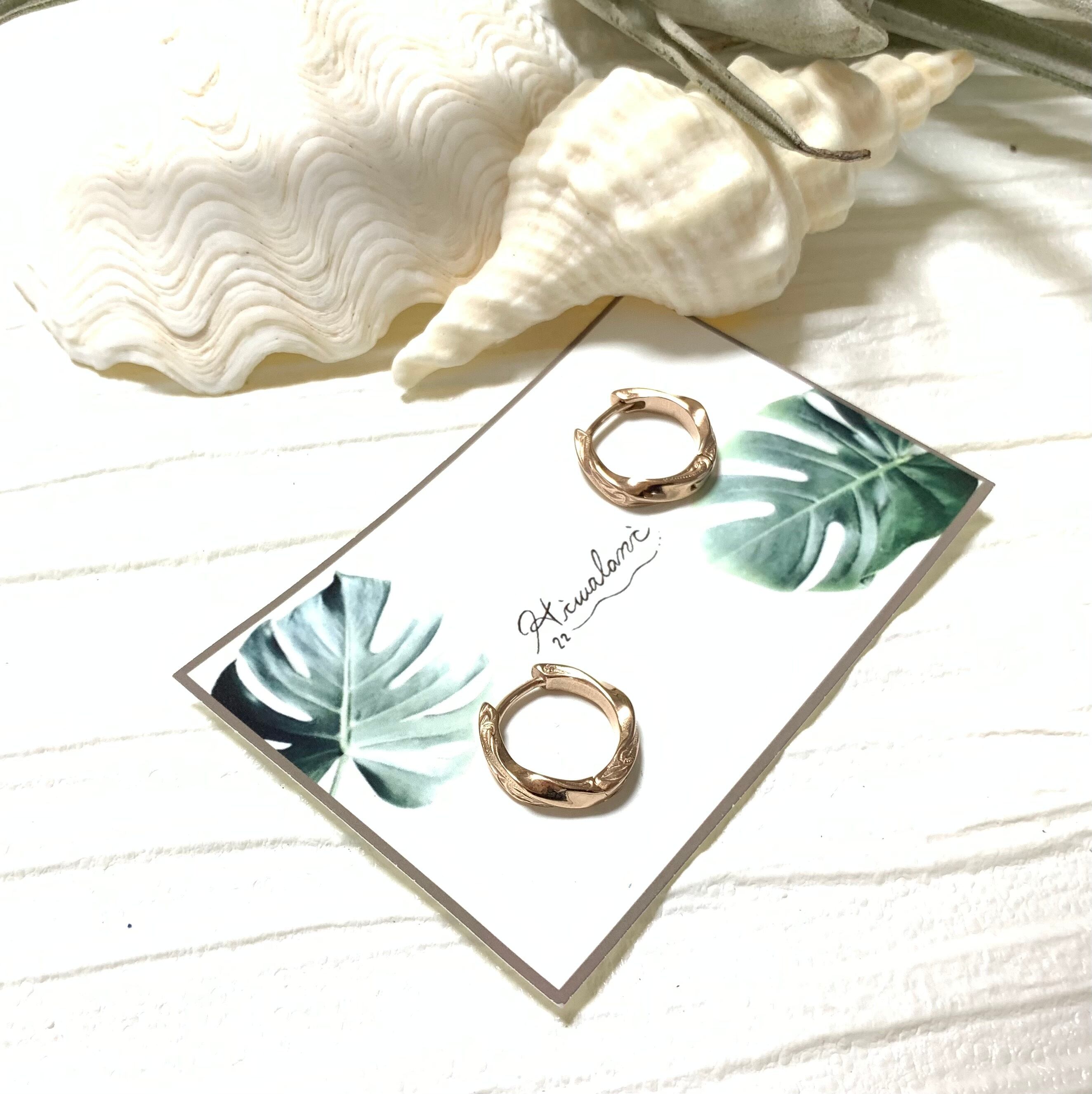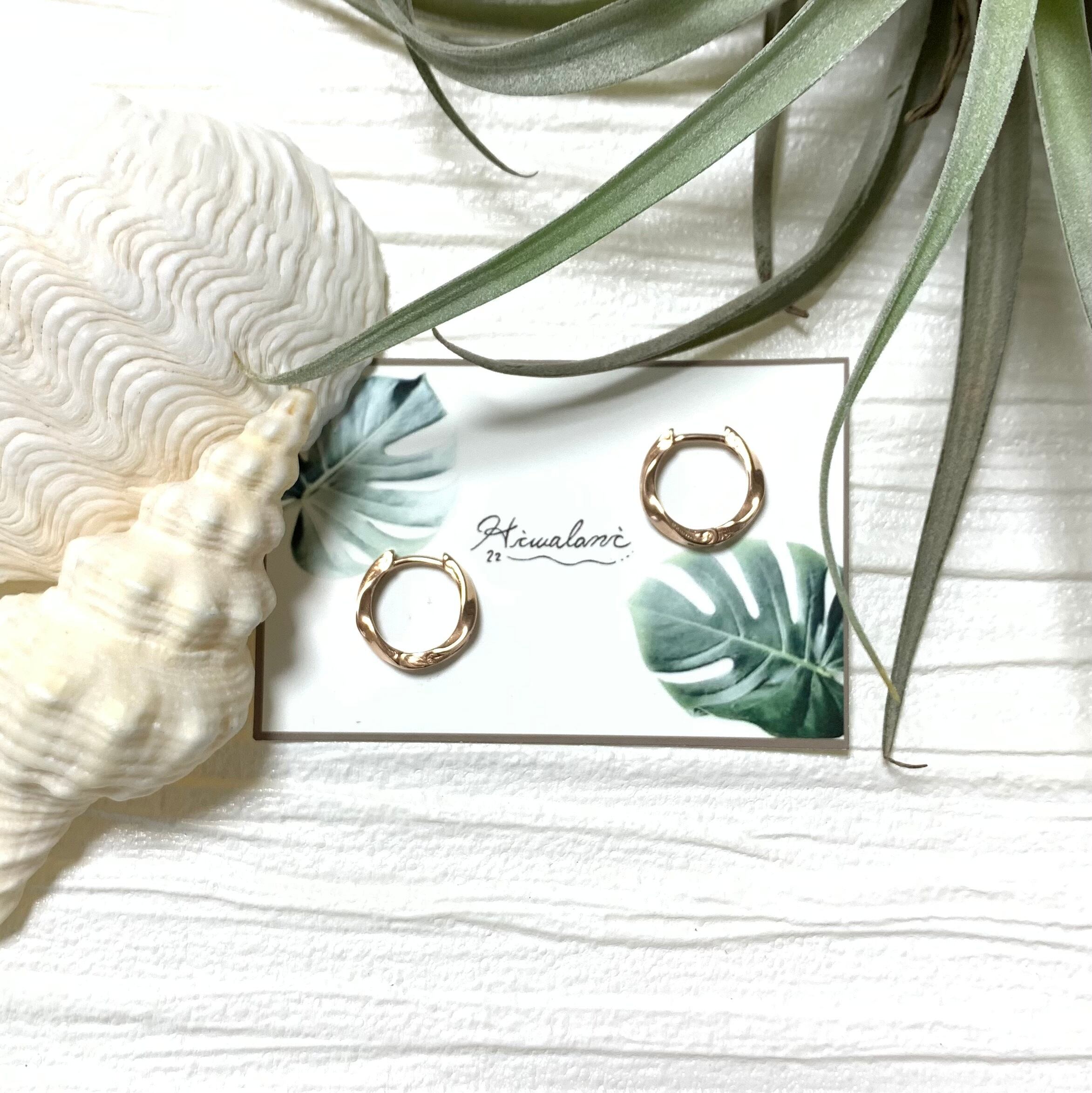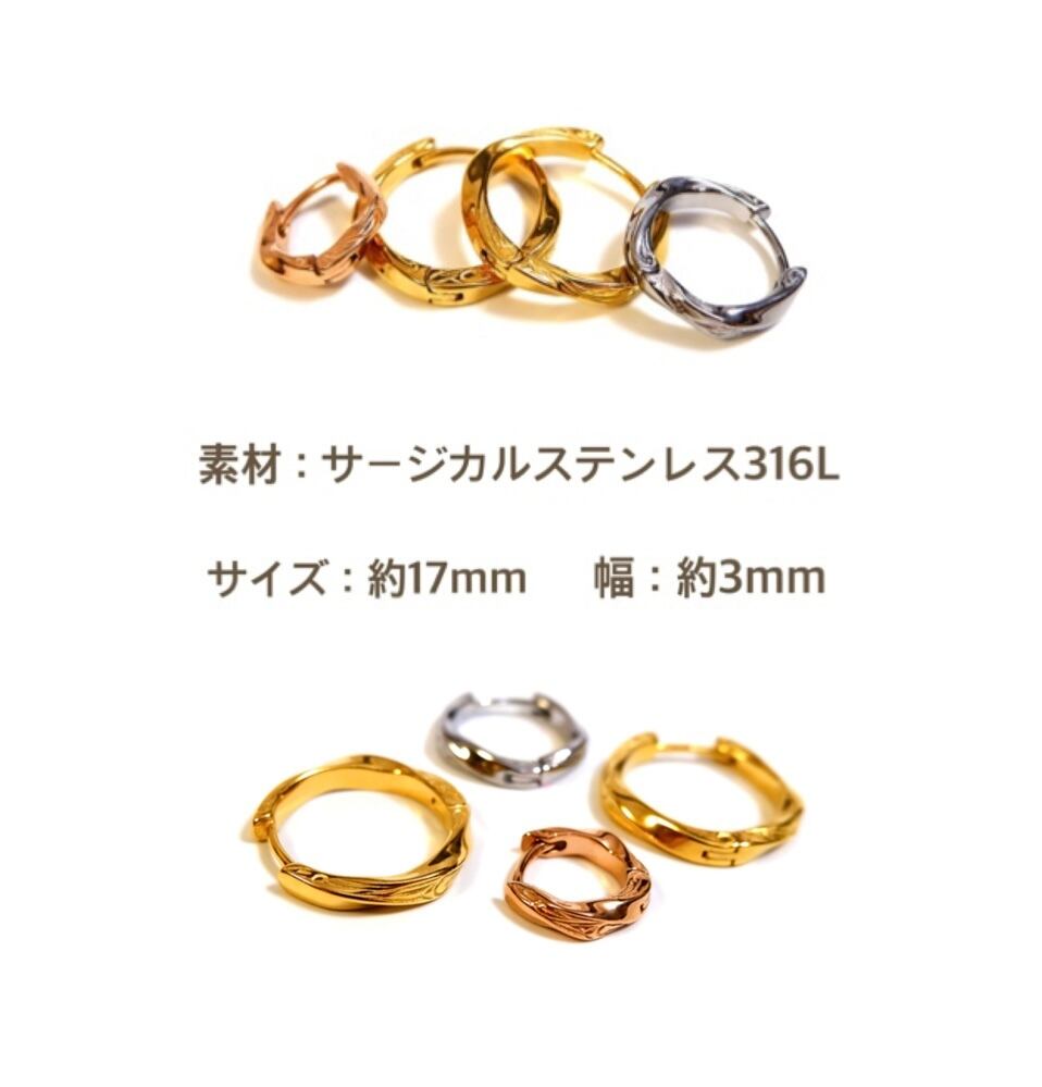 【 ハワイアンジュエリー 】 ツイスト フープ ワンタッチ ピアス ( ピンクゴールド ) 17mm サージカルステンレス 316L ハワジュ 金属アレルギー対応 キャッチレス