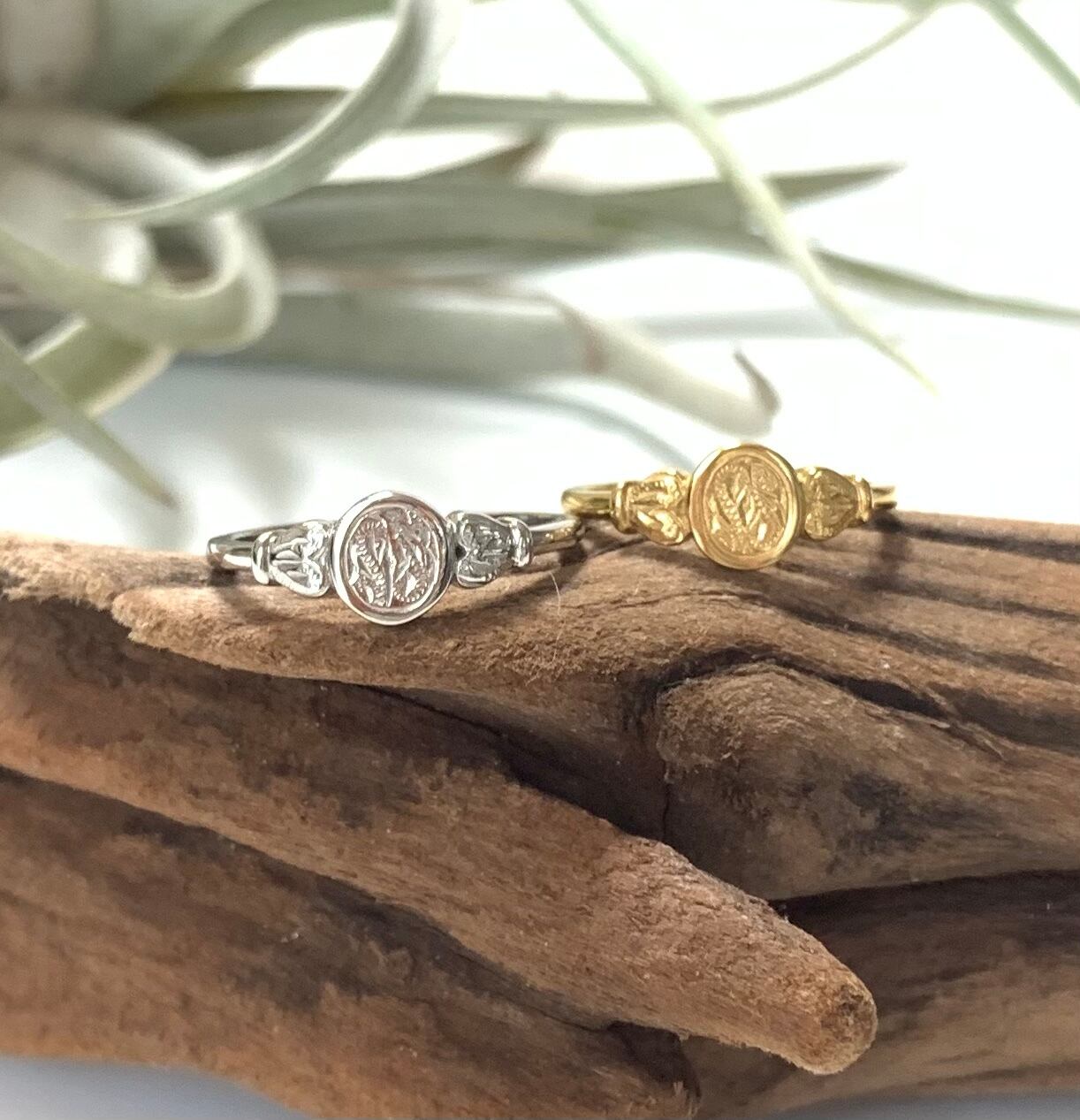 幸福を運んできてくれるスクロールが刻まれたコイン型リング☆