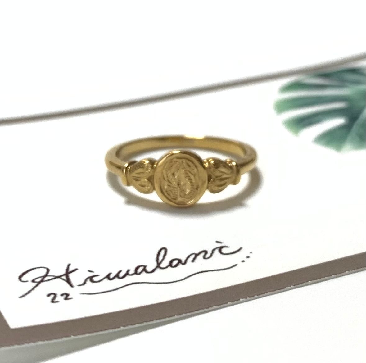 【 ハワイアンジュエリー 】 スクロール コイン リング ( ゴールド ) サージカルステンレス SUS 316L ニッケルフリー 金属アレルギー対応 つけっぱなし 錆びない アクセサリー ハワジュ