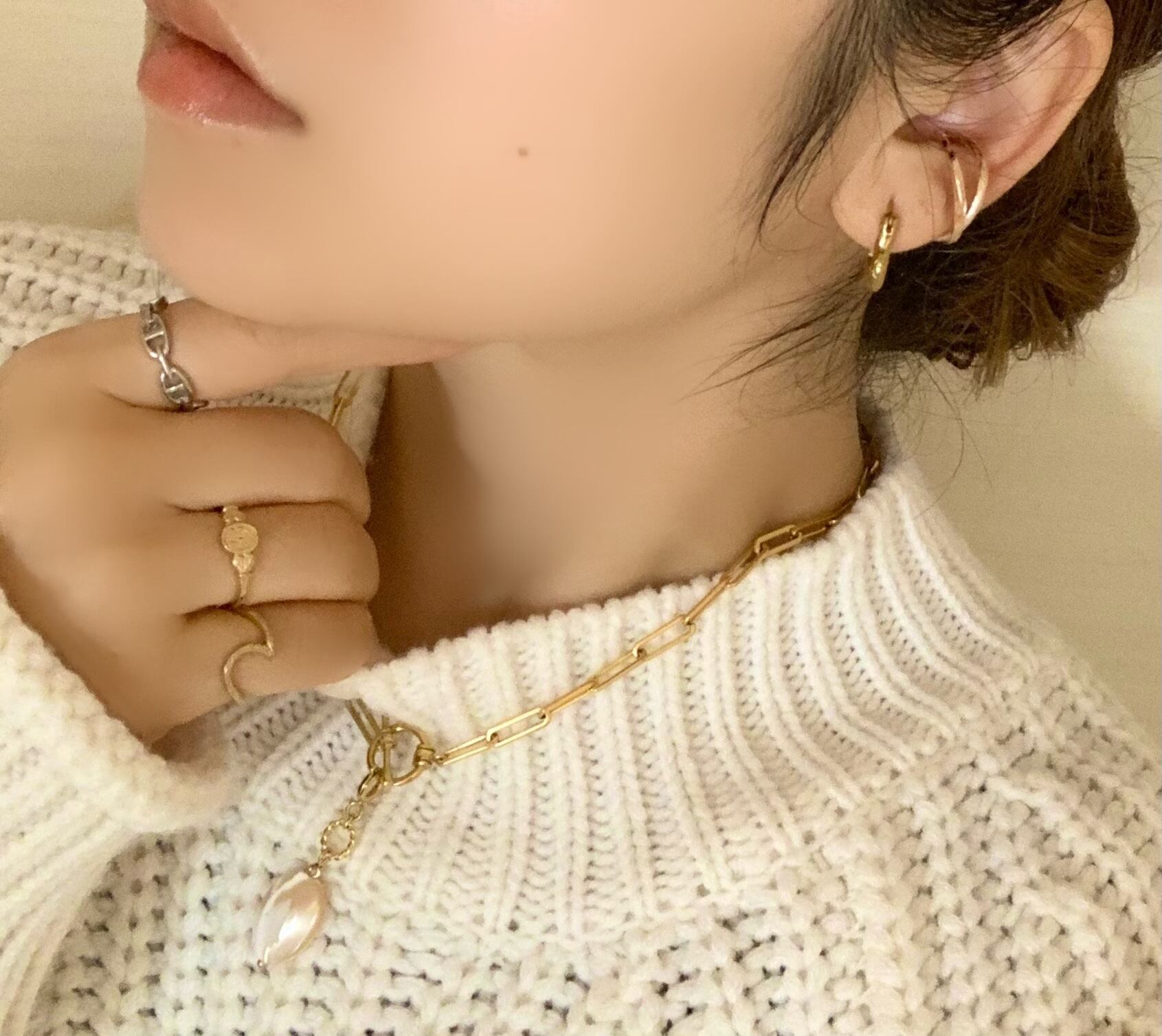 大きすぎないサイズ感が上品で色々なコーディネートに合わせやすいです。