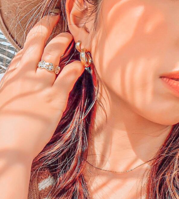 太めのフープが存在感抜群のピアス。