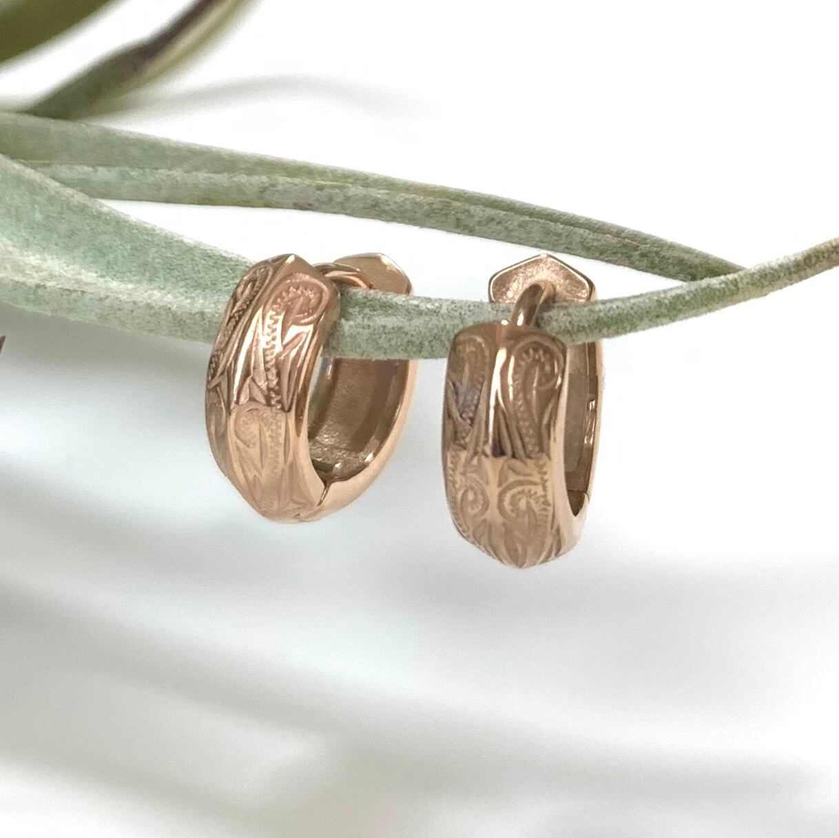 ワイドなフープには『幸福を繰り返し運んできてくれる』と言われるスクロール柄が刻まれています。