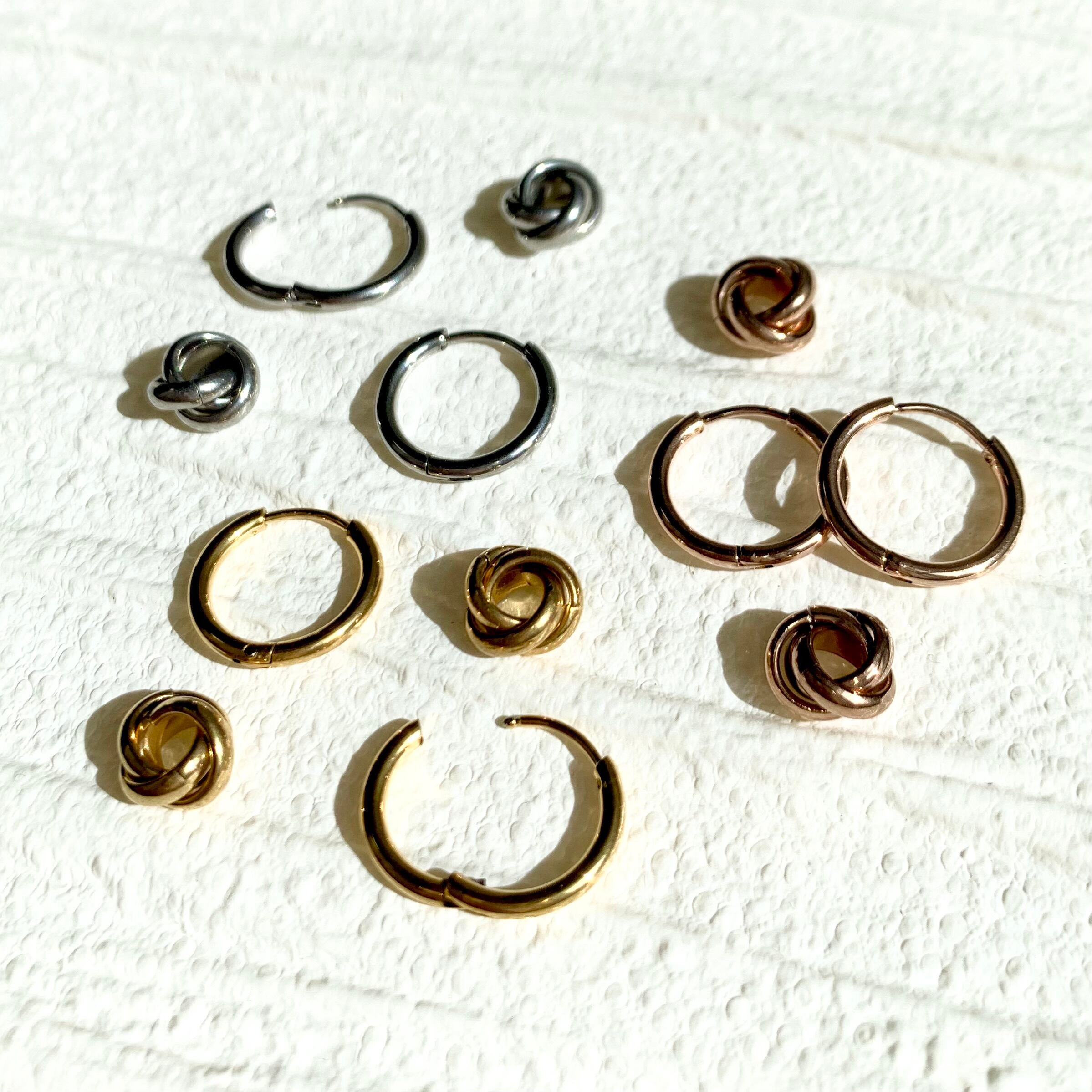 【2way】 トリプルリング フープピアス ( ゴールド/シルバー/ピンクゴールド ) サージカルステンレス316L / つけっぱなし 錆びない / 金属アレルギー対応 ニッケルフリー