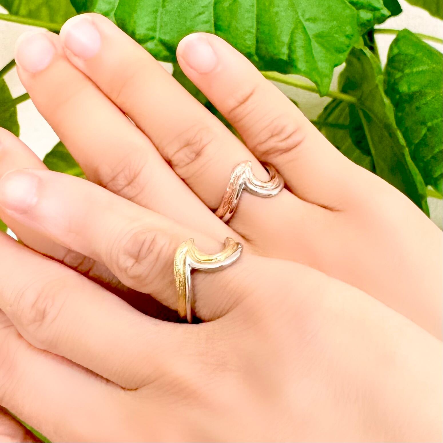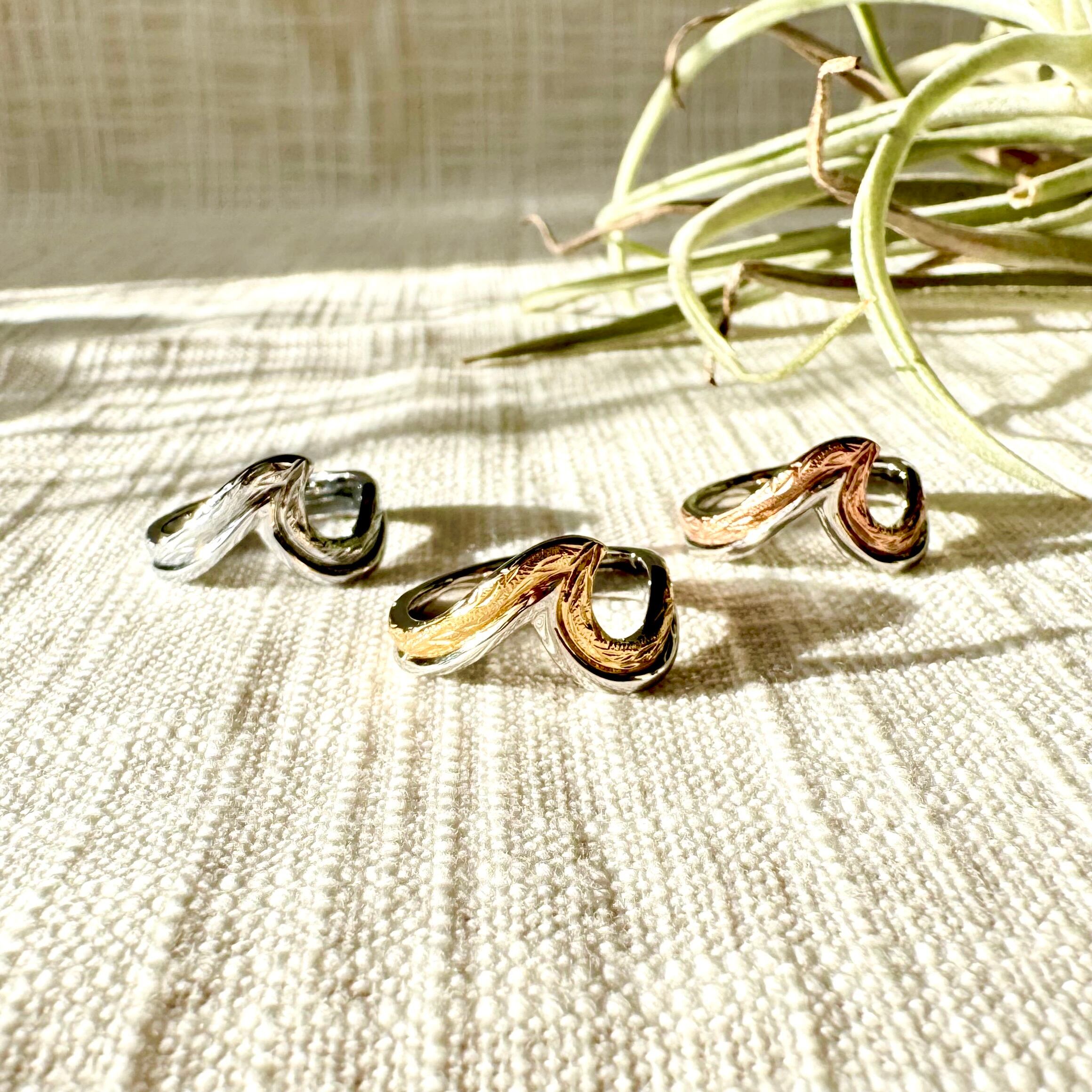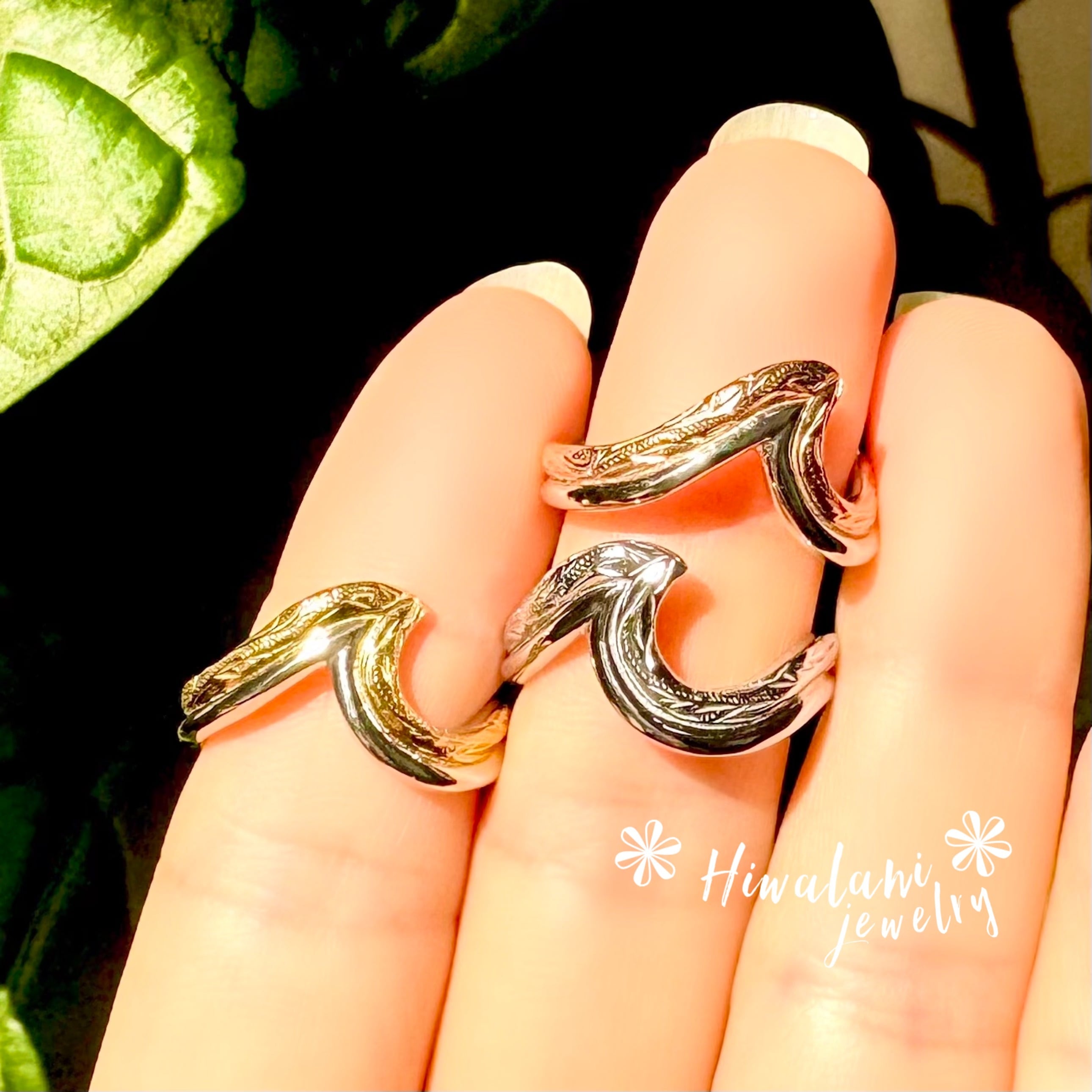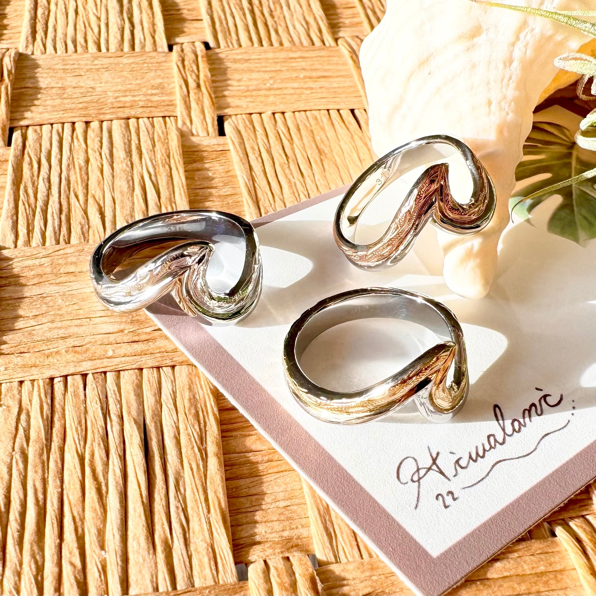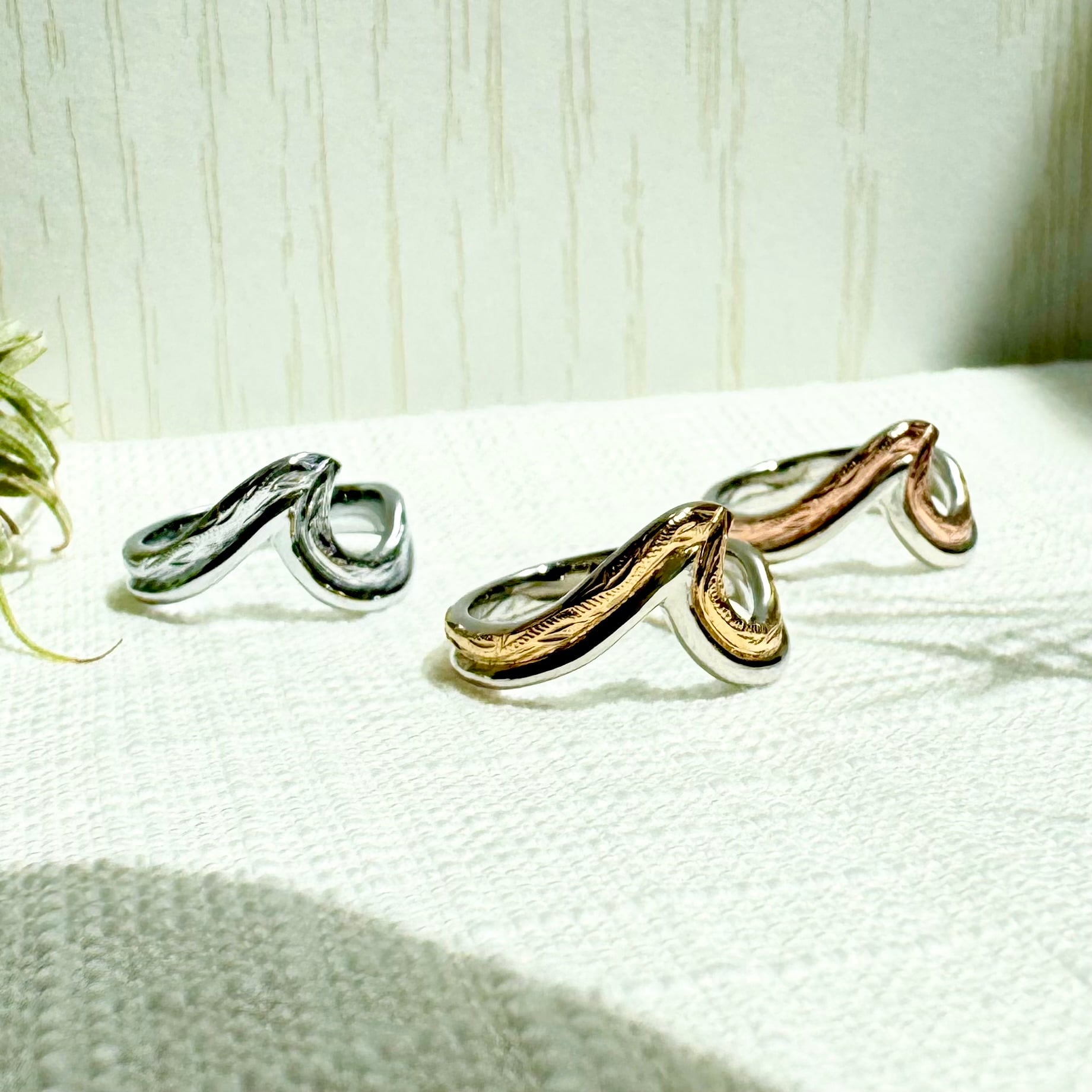 ハワイアン❃ダブルウェーブリング ( ゴールド/シルバー/ピンクゴールド ) サージカルステンレス316L / 金属アレルギー対応 ニッケルフリー / つけっぱなし / 錆びない / お守り ジュエリー / ペア