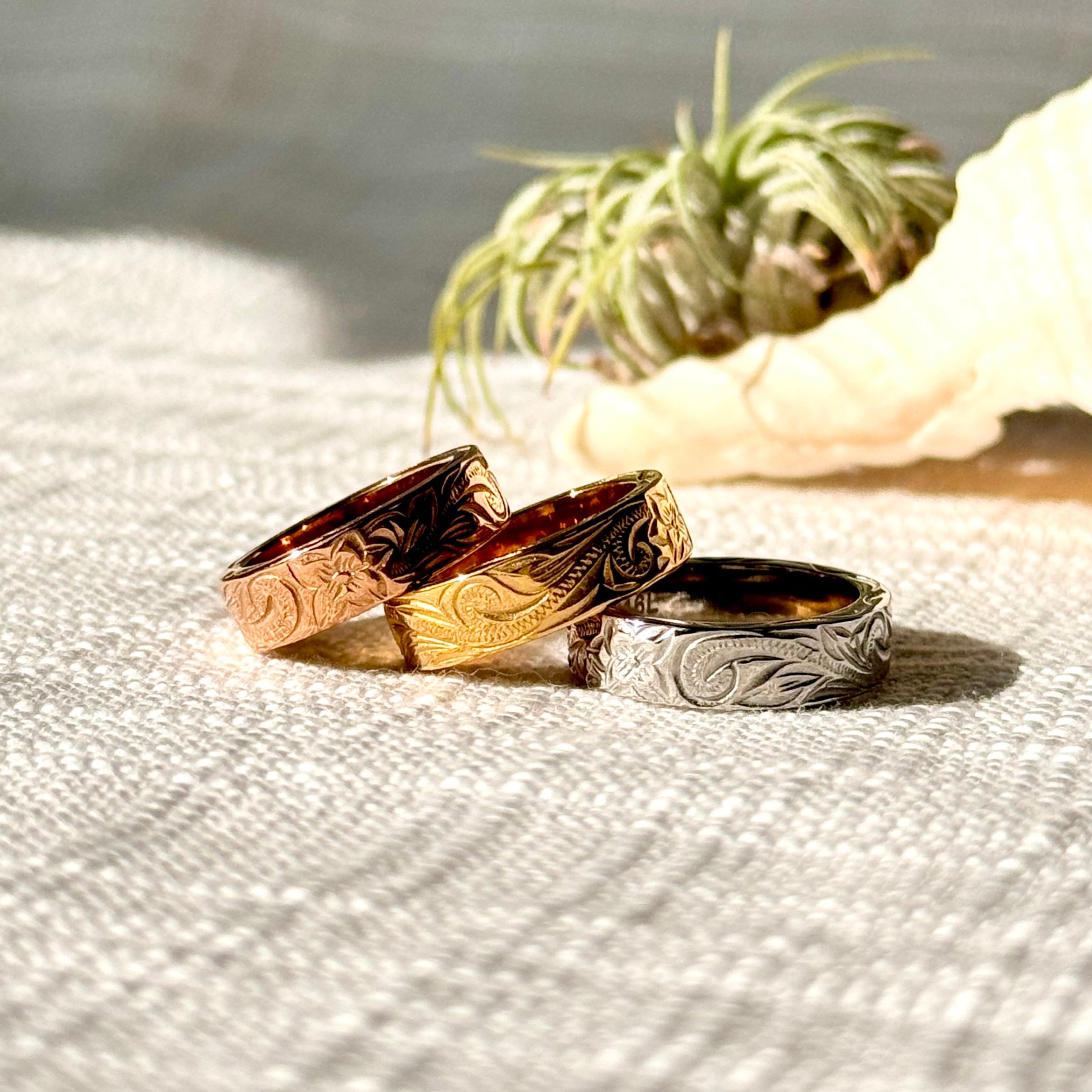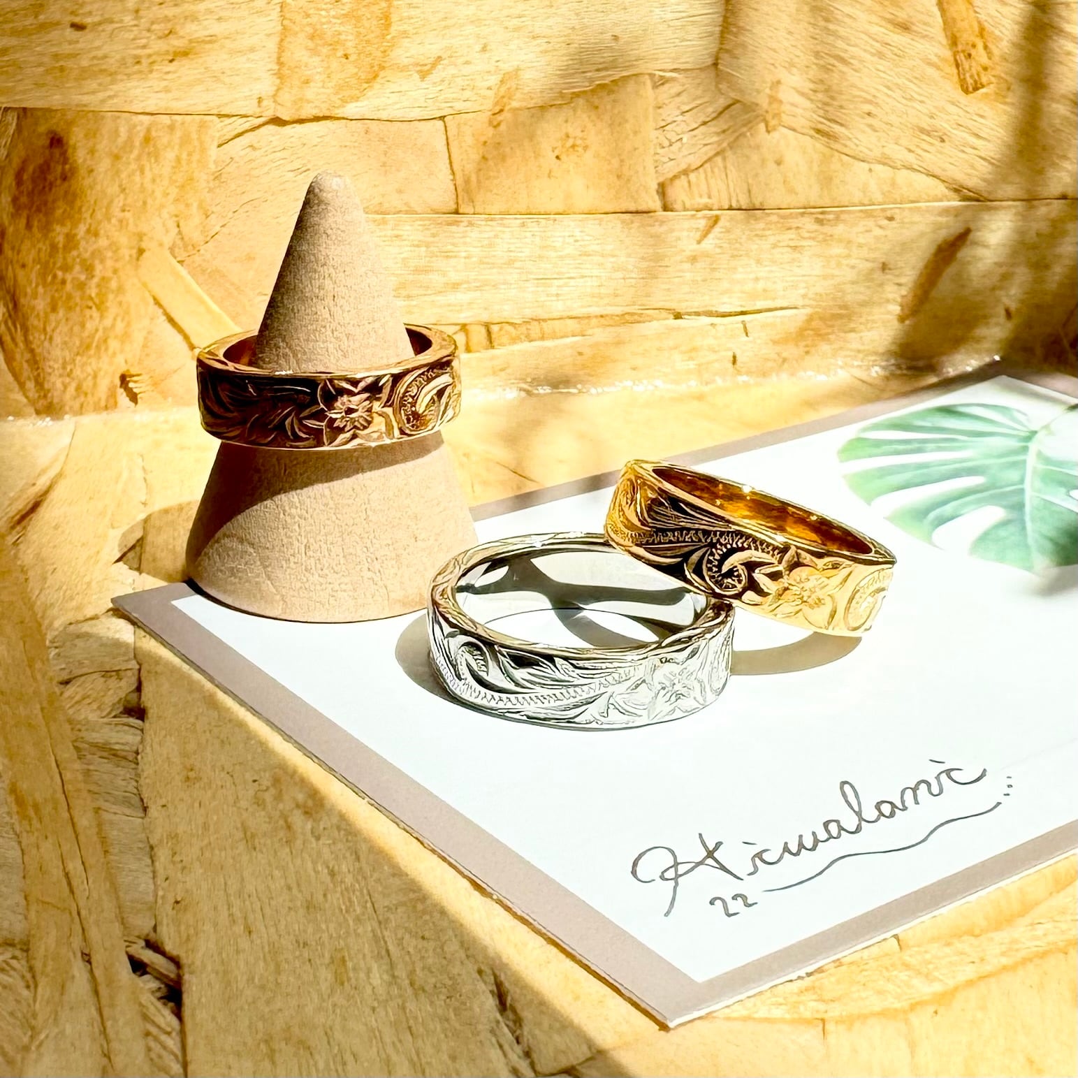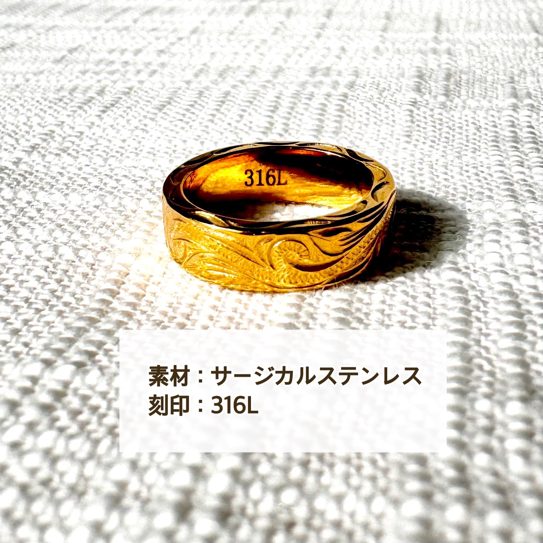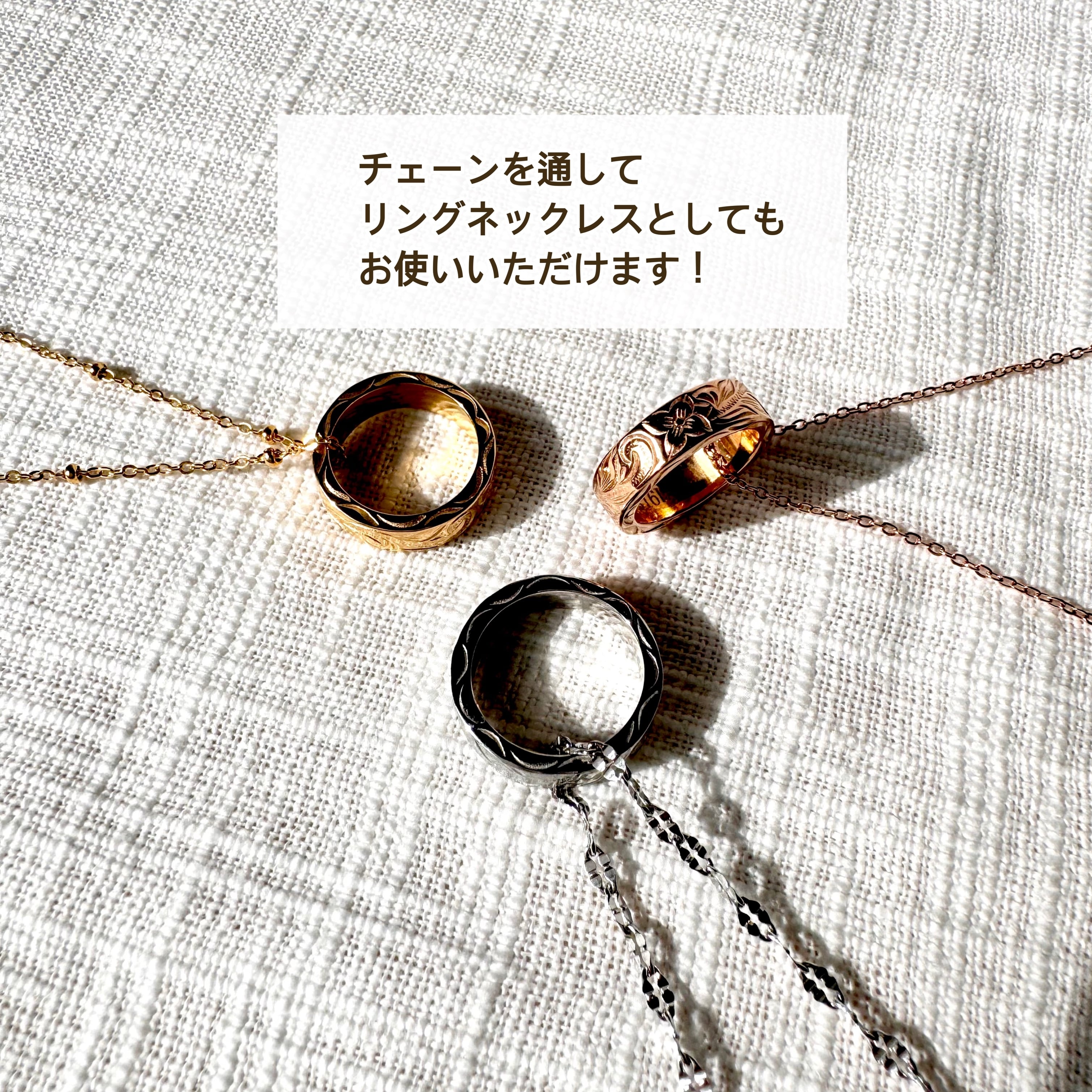 【海・温泉OK!】プルメリア ワイドリング ❃ハワイアンジュエリー (サージカルステンレス316L) 金属アレルギー対応 / つけっぱなし 錆びない / お守り / リングネックレス